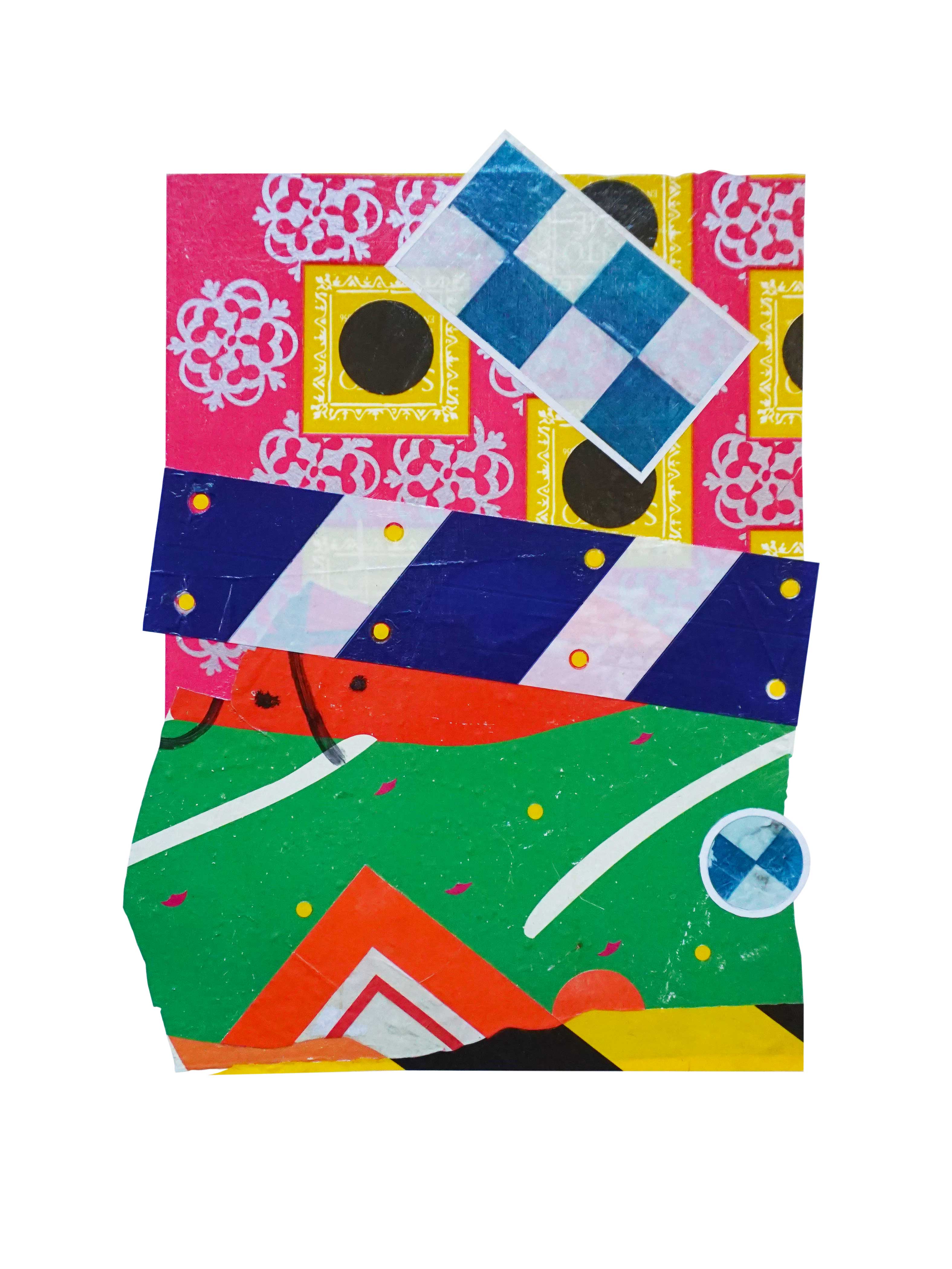 Composed from fragments of torn posters, stickers, tossed ephemera, barricade tape, shopping bags, ticket stubs, handbills, receipts and bar napkins collected during extensive walks across Madrid.